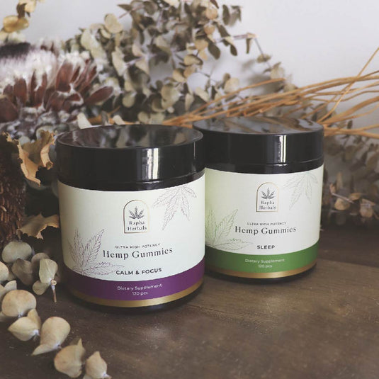 Rapha Herbals is your go-to for premium hemp gummies online. Our gummies are vegan, cruelty-free, non-GMO, gluten-free and pesticide-free. Whether you're seeking deeper sleep, a calmer mind or relief from everyday stress, our gummies are designed to support your wellbeing naturally.