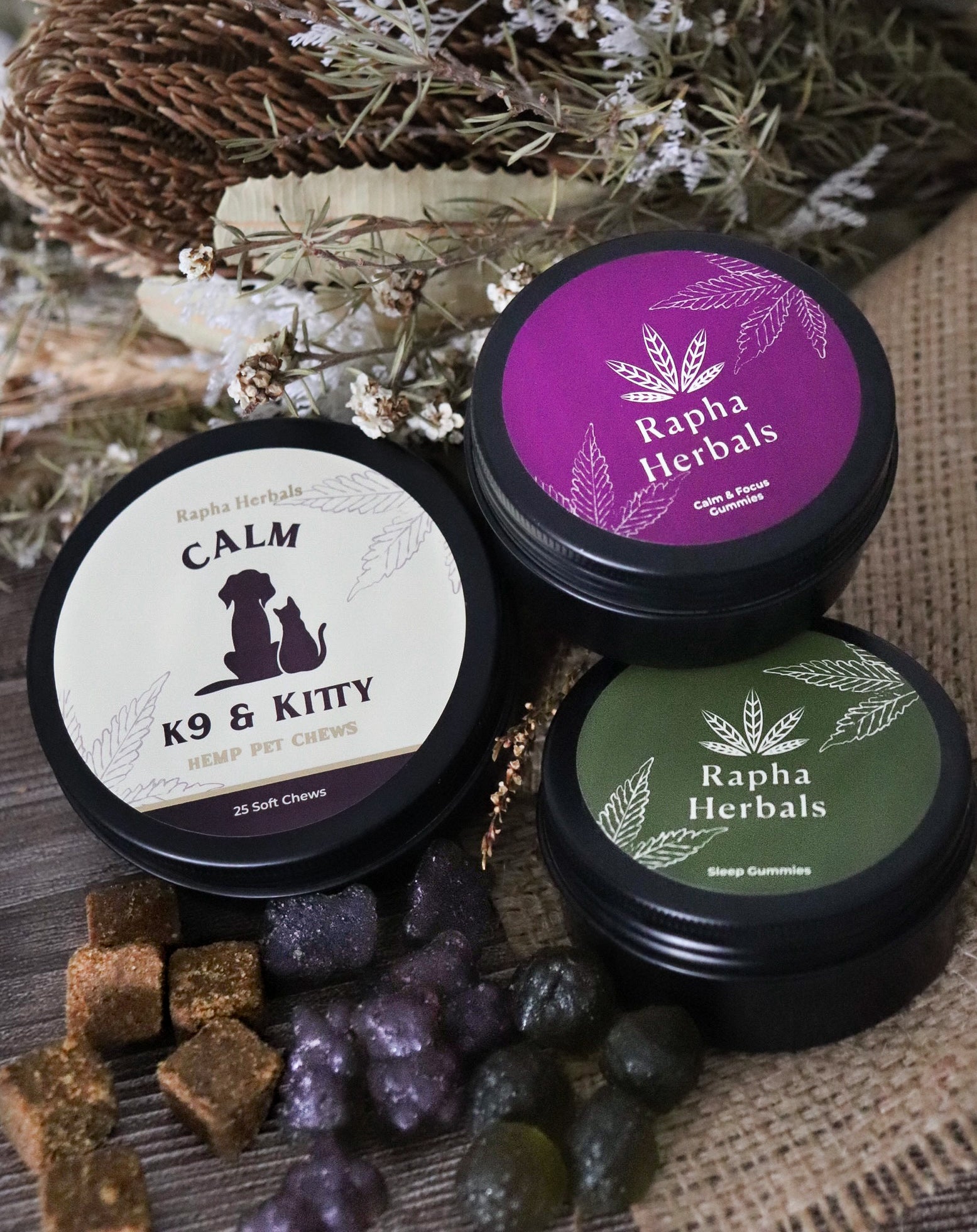 Sleep & Relief, Calm & Focus and Calm K9 Trial Tins